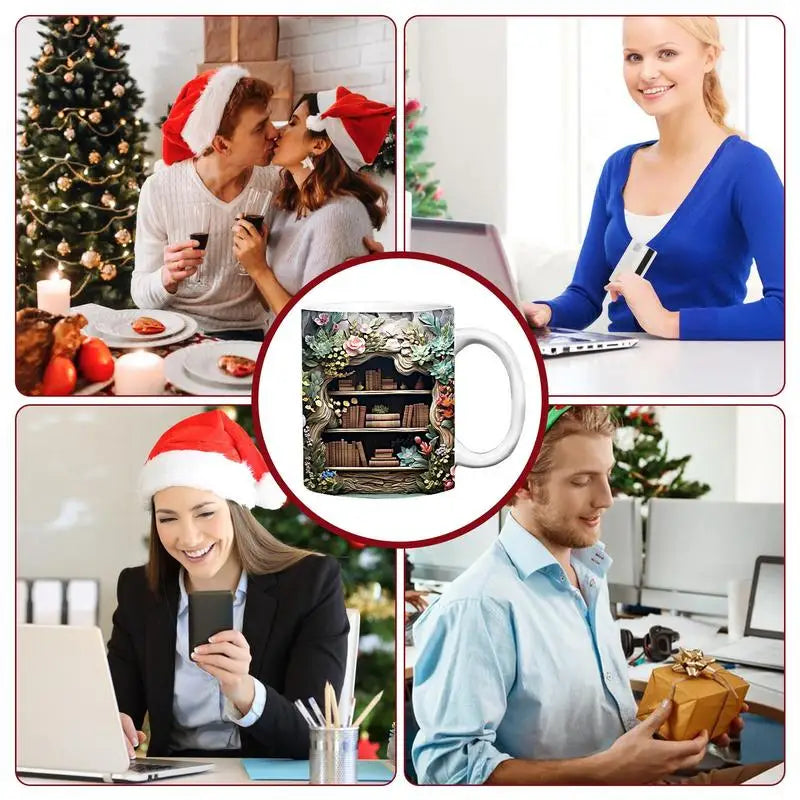 3D Bookshelf Mug Librarian Coffee Mug Ceramic Coffee Mugs MultiPurpose Mugs Book Club Cup Creative Space Design tea cups